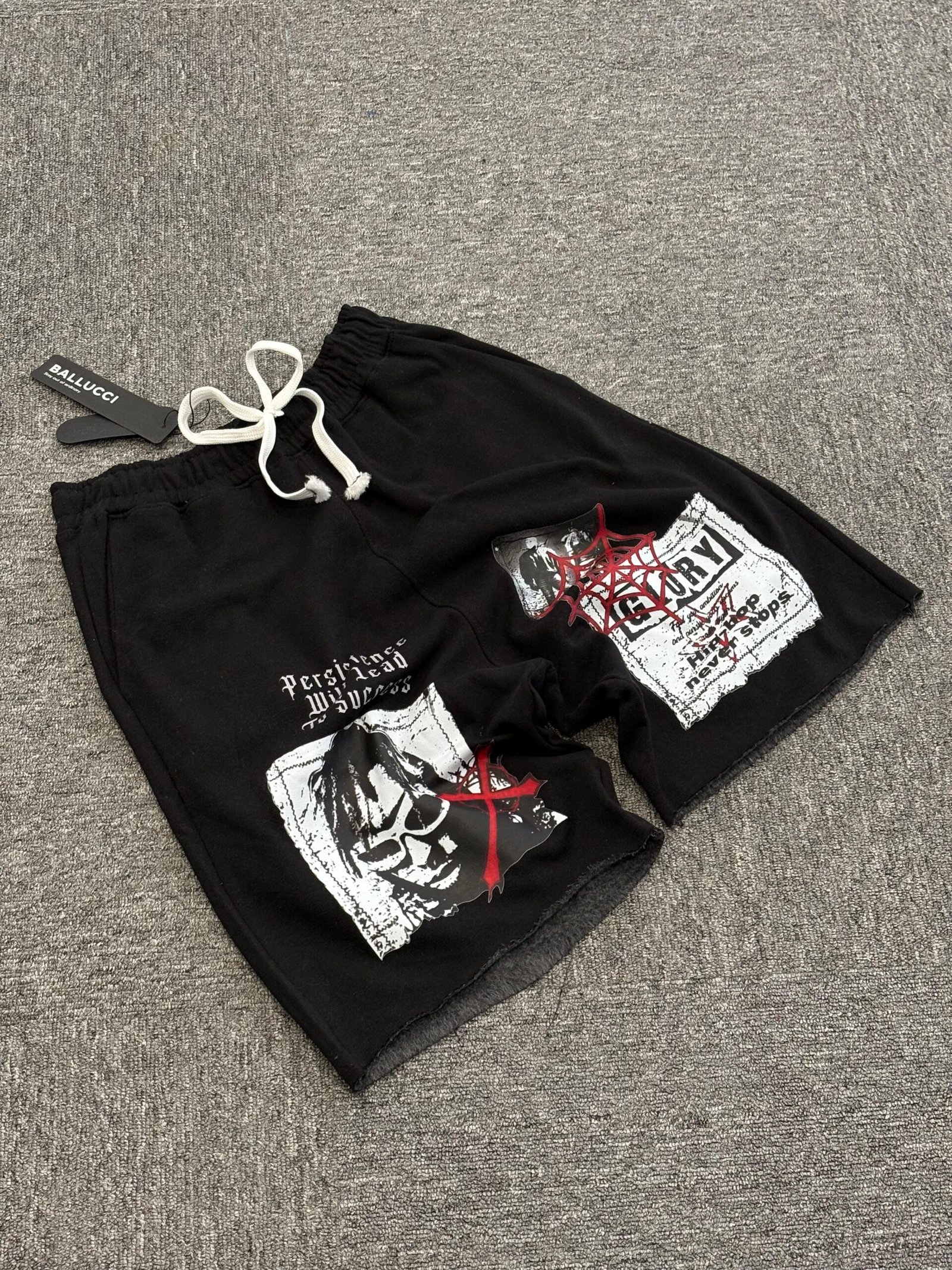 Channel your inner rebel with the Black Gothic Wanted Shorts, crafted for those who don’t follow the rules. These shorts showcase haunting prints including gothic fonts, eerie portraits, and distressed elements, perfect for underground or grunge-inspired wardrobes. The heavyweight cotton fabric (300 GSM) adds structure, while raw hem details and a relaxed fit provide ultimate ease and freedom.