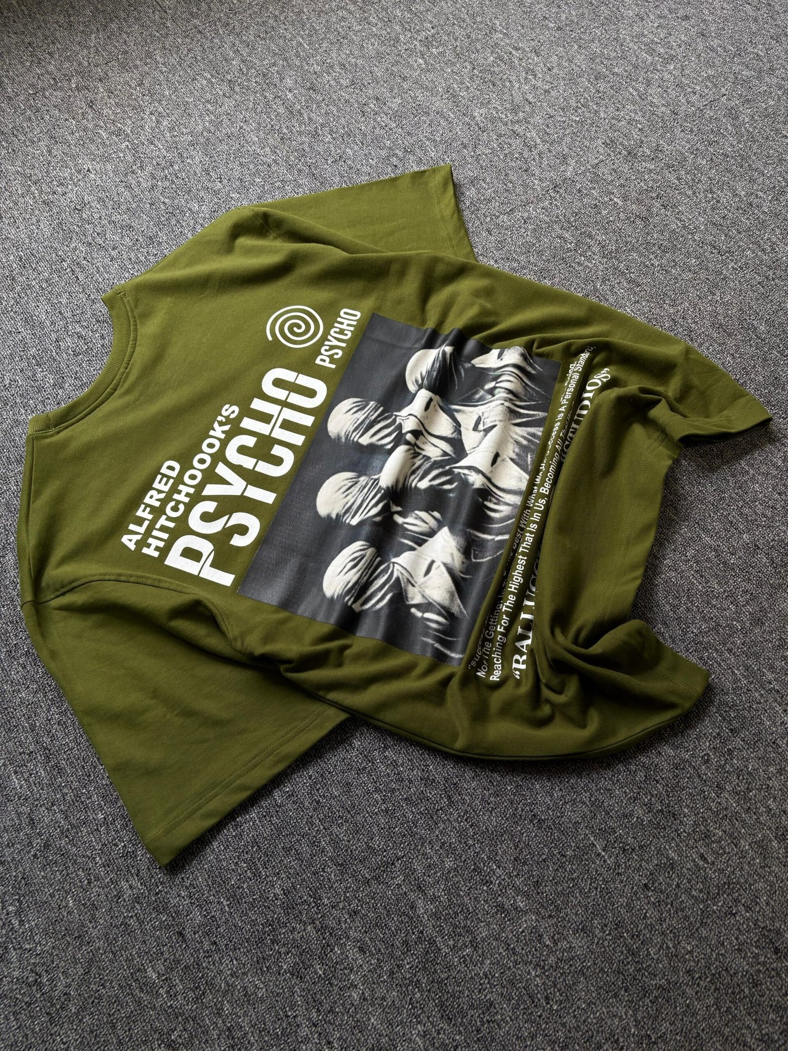 Green Psychedelic Graphic Oversized T-Shirt Featuring Alfred Hitchcock’s Psycho